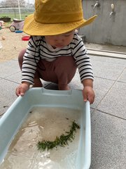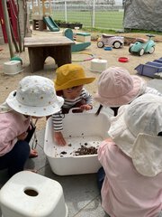 中田先生が、おたまじゃくしとダンゴムシを持って、遊びにきてくれました。初めて見るおたまじゃくしに興味津々でした。今年度の保育テーマ「みんなのいのち」です。これからカエルになる姿を、観察していきたいと思います。