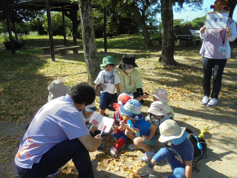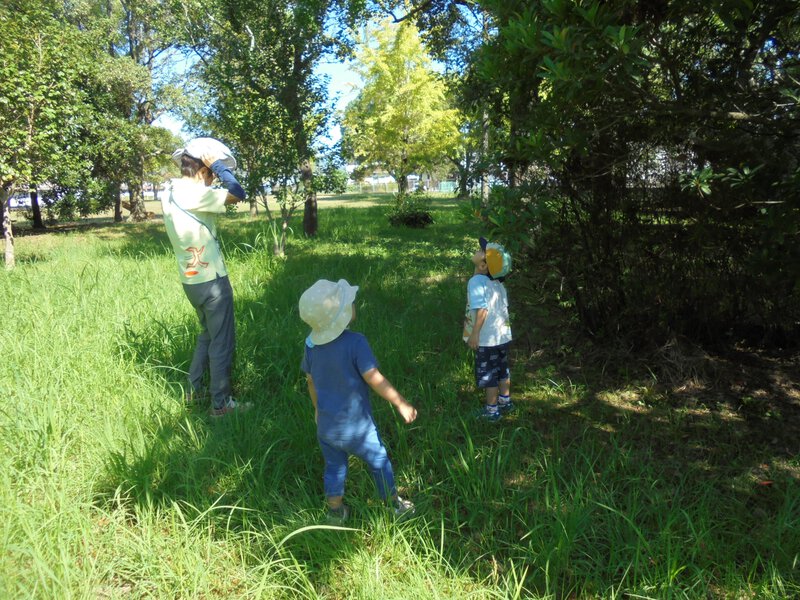 今日は1、2歳児さんは久しぶりにお散歩に出かけましたよ!公園ではどんぐり探しや、ブランコ追いかけっこなどをしてたくさん運動をしましたよ♪日陰は風も涼しく過ごしやすかったです。防犯訓練も行い、お散歩の時に怖い人が来たら言うお話を行い、しっかりと防犯意識を高めました。