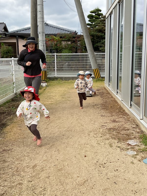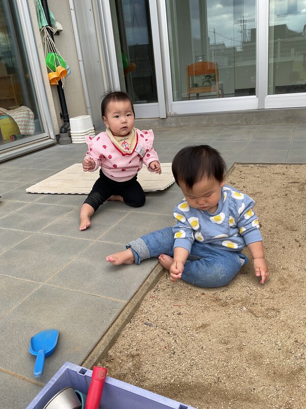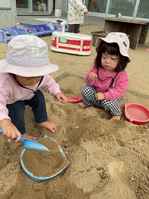 今日は寒かったですね。今日も戸外遊びをしました!2歳児さんはかけっこをして体を温めていました!コンビカーで競争したりかけっこで競争したりとたくさん動きました!0,1歳児さんは砂で遊んでいました!ケーキを作ったり、アイスクリームを作ったりしていました😊