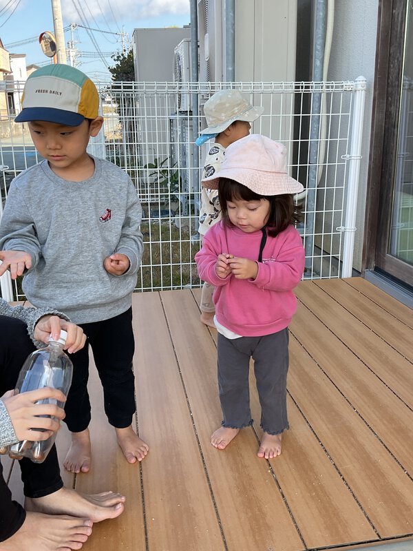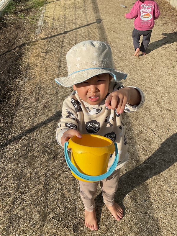 今日は天気が良くお外は暖かかったですね☀️今日もたくさんお外で遊びました!どんぐりを保育者からもらって「見て!どんぐりだよ」と見せてくれました!他にもお家の中で一緒に料理をしたり、それぞれ好きな遊びを見つけて遊んでいました☺️