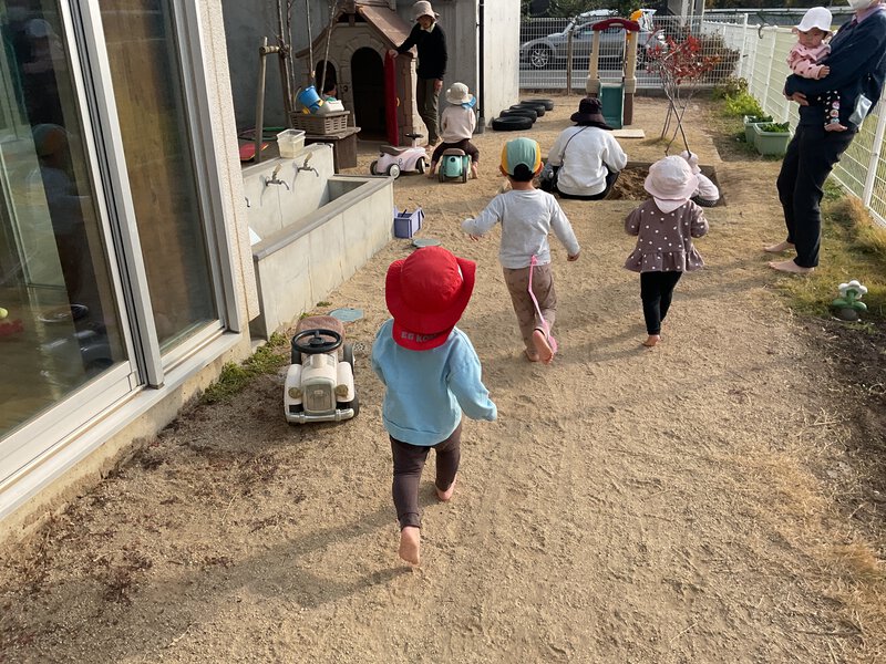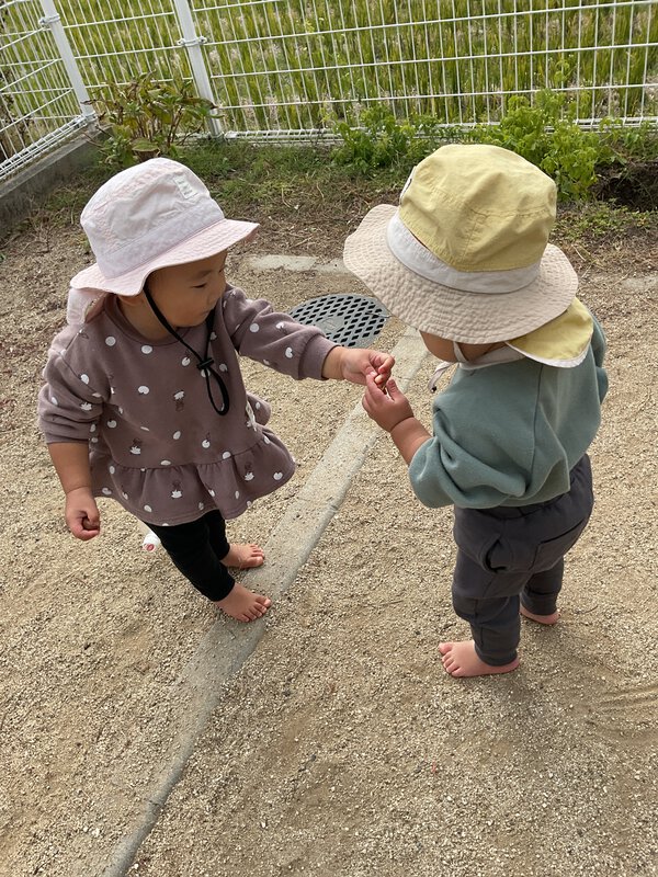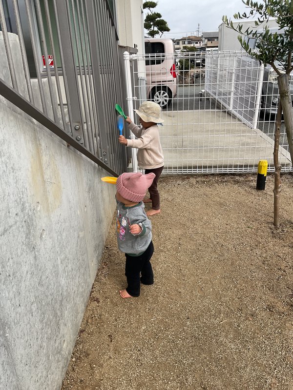 今日は寒かったですね。これからどんどん寒くなっていきますね。今日も元気にお外で遊びました!しっぽ取りをし、「まてまてー」と追いかけ、逃げる方はしっぽを取られないように逃げていました!葉っぱがたくさん落ちているのに気づいて「はい、どーぞ」とお友だちにプレゼントしていました🍃スコップでフェンスを叩き、音を楽しむ姿も見られました😊