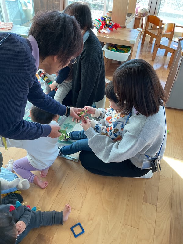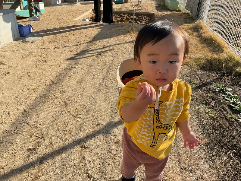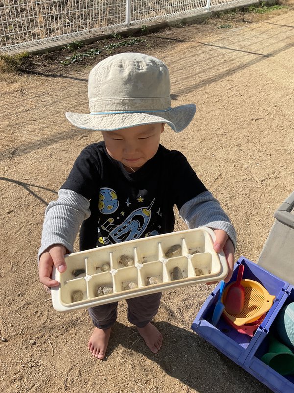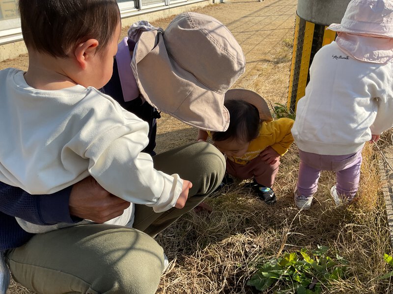 今日のおやつは七草粥です。七草を、匂い触ってみました。スズナを、「トマトみたい」と伝えてくれました。面白いですね。園庭ではカタツムリや、種や石やいちごの花など見つけて、教えてくれました♪