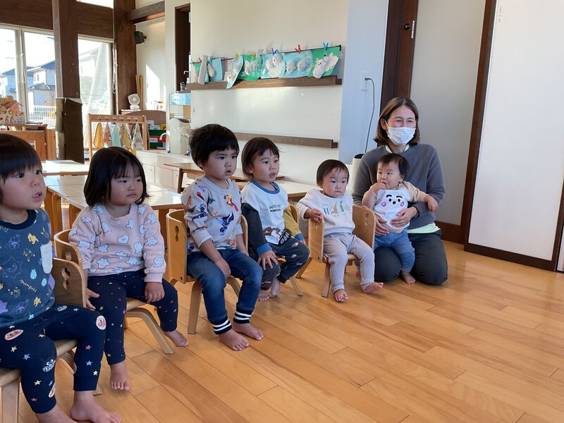 交通安全教室を行いました。「道路には何があるかな?」の質問に、「くるま」と答えてくれました。「道路にボールやスコップを投げていいかな?」の質問には「だめ」と答え、よく理解をしていましたよ。道路に投げるとなぜ危険なのか、絵を見ていきました。