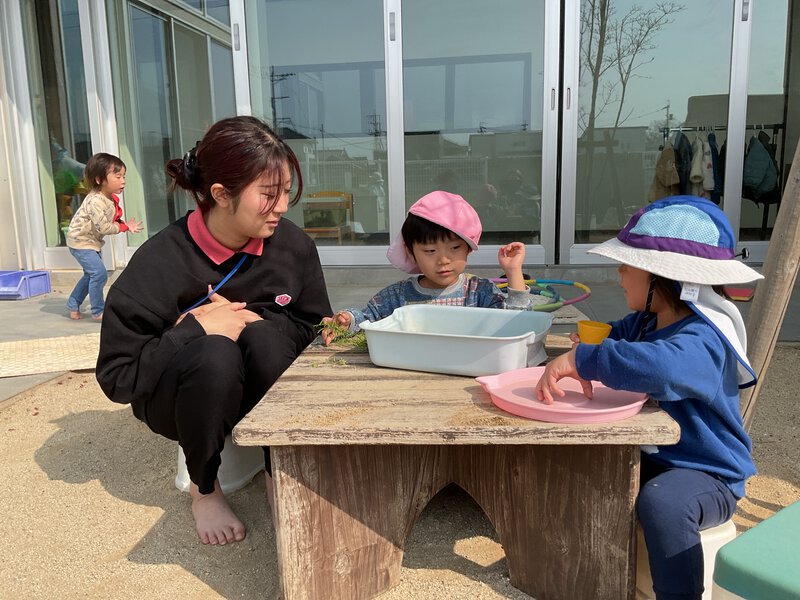 また、今日から3日間入職前実習として、来年度から働かれる先生が実習に励まれています!子どもたちも新しい先生に興味津々と言う様子で声を掛ける姿が見られました!