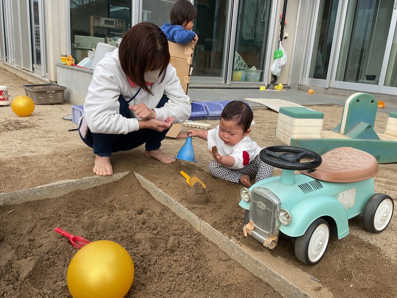 他にもフラフープで電車ごっこをしたり、砂場でアイスクリームを作ったりしていました😊