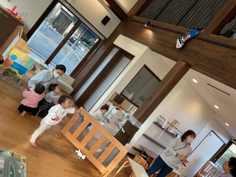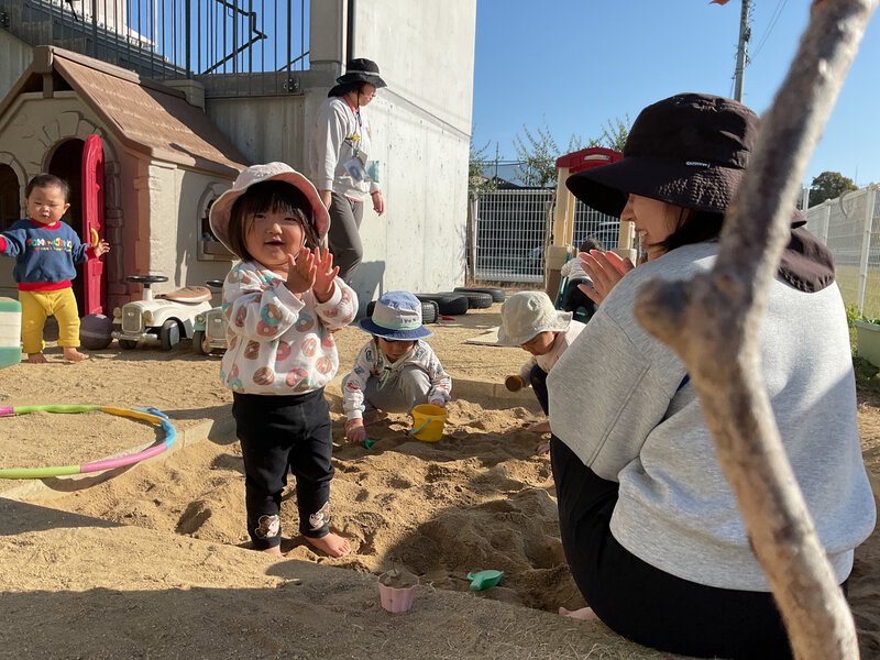 今日も日差しが温かくお外遊び日和でした✨走ったり、お家の中に入り、「はいどーぞ」のやり取りを楽しんだり、砂場でケーキを作りお誕生日会を開いたりしていましたよ!また、お部屋ではクリスマスの飾りつけが進み、大きな靴下が飾られると子ども達は上を見上げて、何があるんだろうと興味津々な様子でした👀
